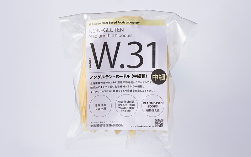 北海道産大豆のおからと道産米粉で作ったヌードルです。無添加でタンパク質や食物繊維がとれる中細麵。スープやソースによく絡むもっちり食感をお楽しみください。添加物不使用。