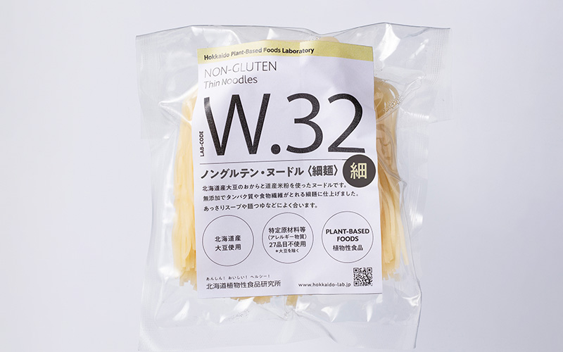 北海道産大豆のおからと道産米粉を使ったヌードルです。無添加でタンパク質や食物繊維がとれる細麵に仕上げました。あっさりスープや麺つゆなどによく合います。添加物不使用。