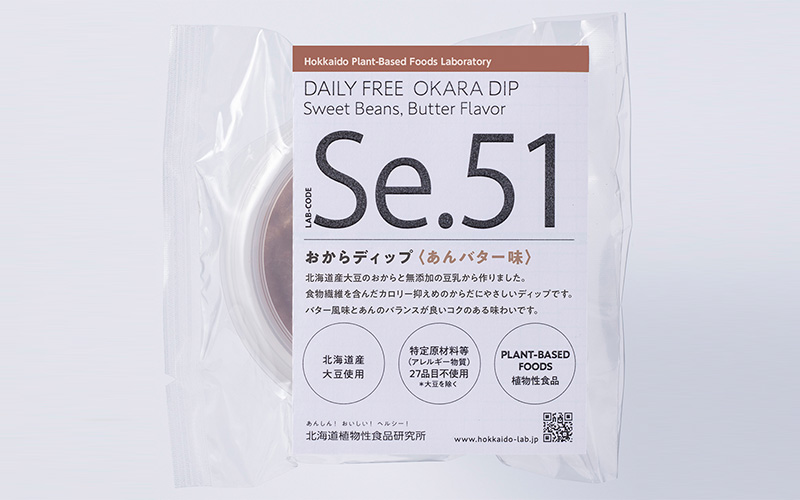 北海道産大豆のおからと無添加の豆乳から作りました。食物繊維を含んだカロリー抑えめのからだにやさしいディップです。バター風味と餡のバランスが良いコクのある味わいです。